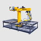 機器人工作站采用C型梁可旋轉(zhuǎn)倒吊機架結(jié)構(gòu)。機架可以進(jìn)行360度旋轉(zhuǎn),大幅度提升機器人焊接的工作范圍,同時機器人倒吊在工件上方作業(yè)方式也減少了工作站的占地面積。
